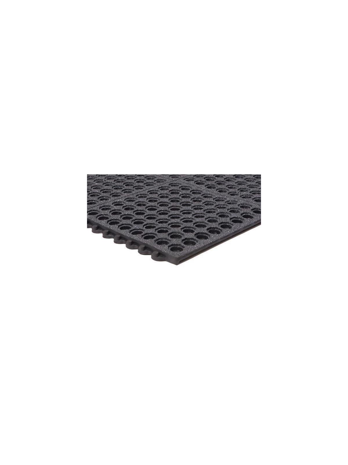 This interlocking drainage mat contains the highest level of grease and petroleum resistance and is made of 100% nitrile. It's ideal for demanding industrial and kitchen environments exposed to oil and grease spills. Modular 3 x 3' mats are lightweight and easy to handle for easy clean-up. Will not deteriorate from the effect of petroleum, oils and fats. Nib backing elevates mat above the surface for improved drainage and large holes allows debris to fall through. Choose the gritted surface for extra traction. FOB Shipping Point. Yellow Safety Borders sold separately.