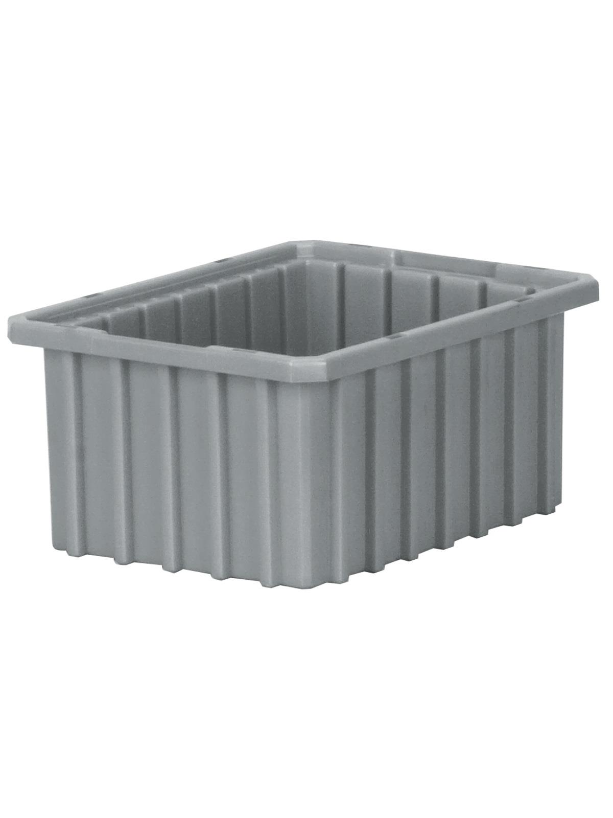 Intersecting dividers allow the container to be subdivided in separate compartments as small as 1-1/8" sq. Injection-molded from high density polyethylene -- resists most solvents and chemicals. Compatible with most racks, shelving and automated material handling equipment. Available in Red, Blue, or Gray. Dividers and lids sold separately. FOB Shipping Point.