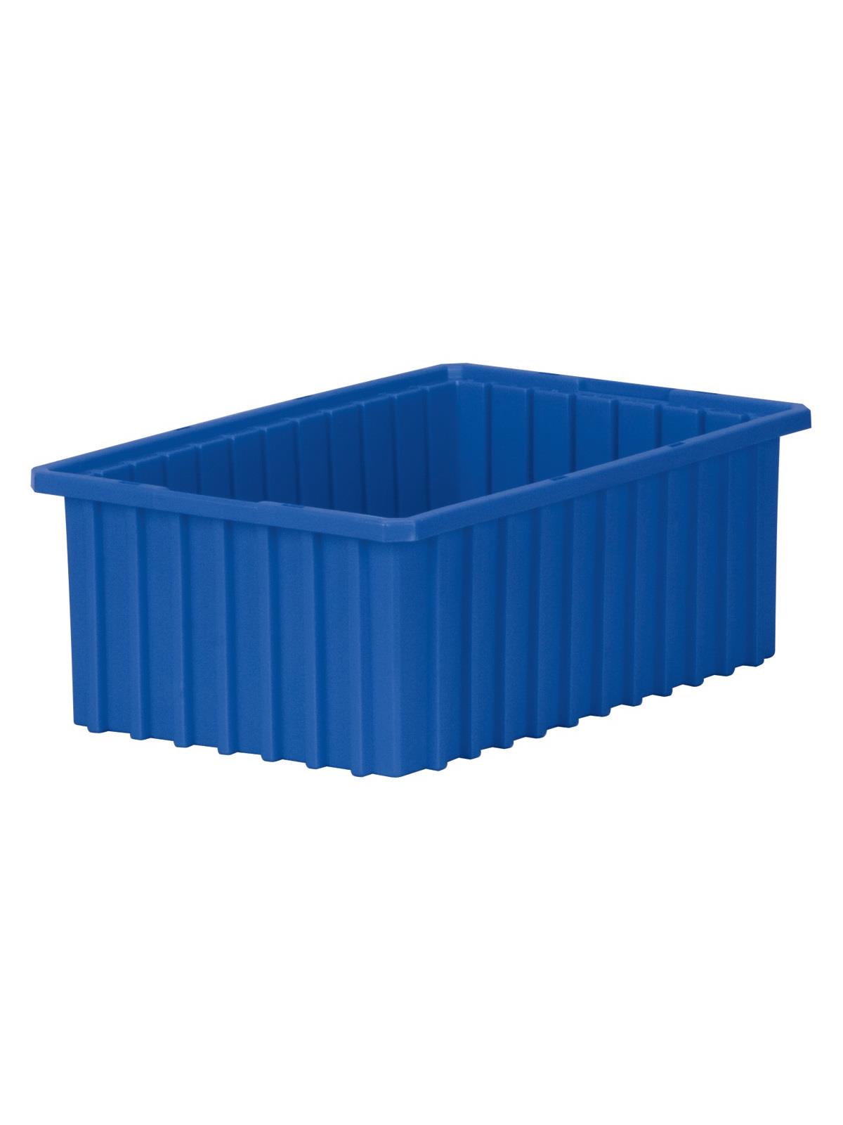Intersecting dividers allow the container to be subdivided in separate compartments as small as 1-1/8" sq. Injection-molded from high density polyethylene -- resists most solvents and chemicals. Compatible with most racks, shelving and automated material handling equipment. Available in Red, Blue, or Gray. Dividers and lids sold separately. FOB Shipping Point.