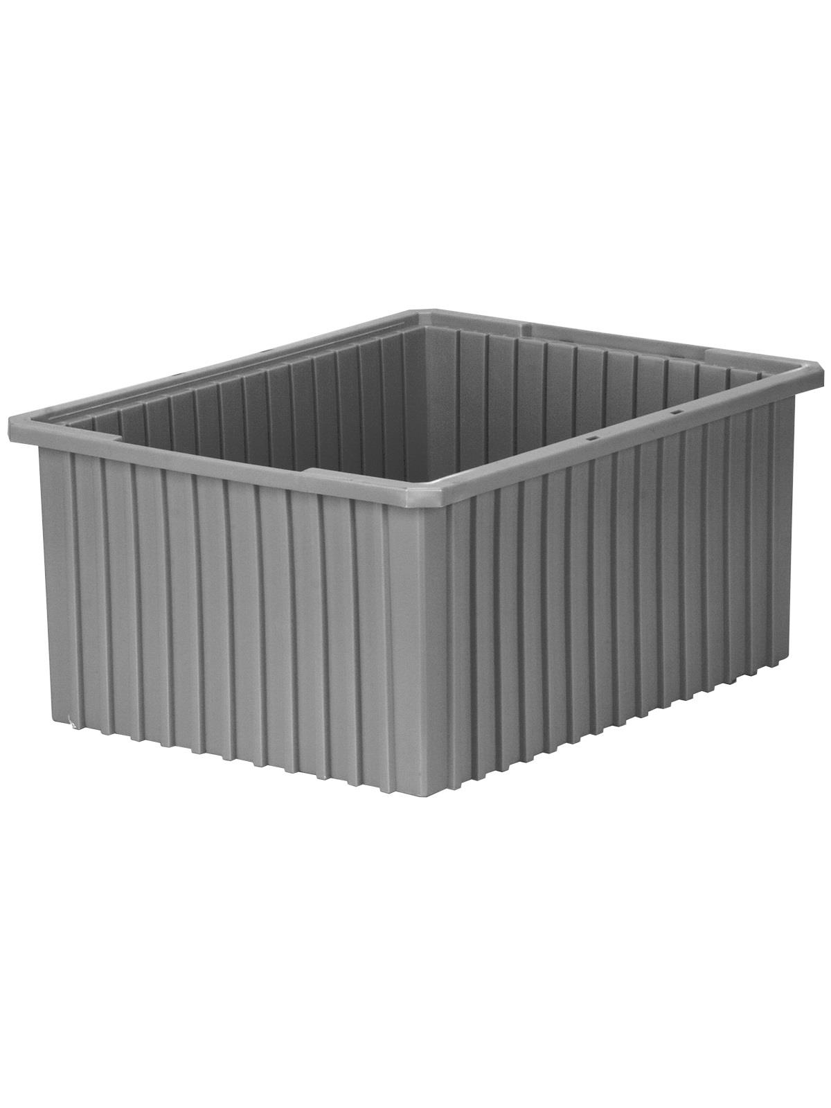 Intersecting dividers allow the container to be subdivided in separate compartments as small as 1-1/8" sq. Injection-molded from high density polyethylene -- resists most solvents and chemicals. Compatible with most racks, shelving and automated material handling equipment. Available in Red, Blue, or Gray. Dividers and lids sold separately. FOB Shipping Point.