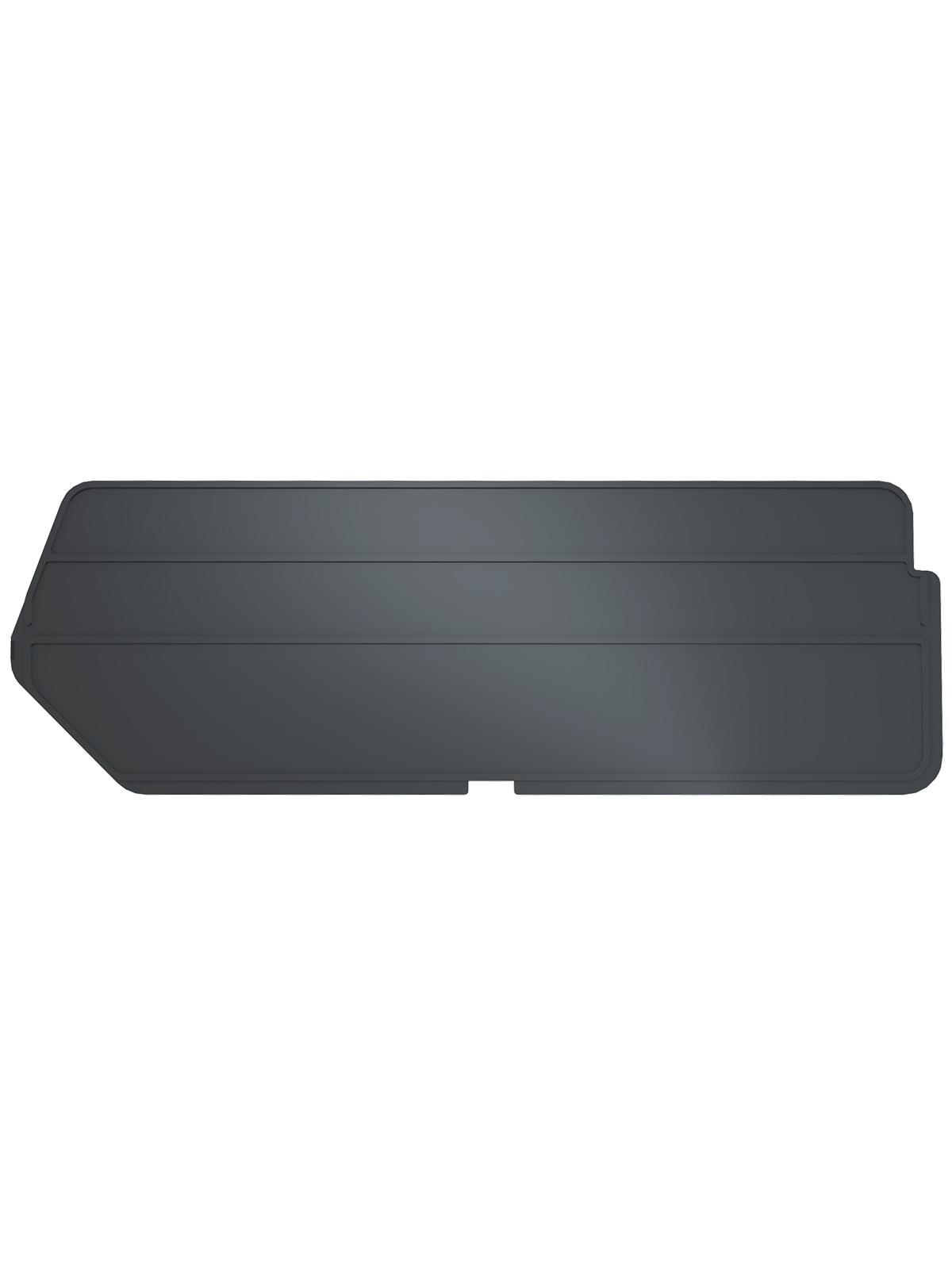 Dividers slip into grooves on the inside of the bins (sold separately). Lengthwise dividers keep items separated in the bin and are available in black. Cross dividers divide bins widthwise and are black. FOB Shipping Point.