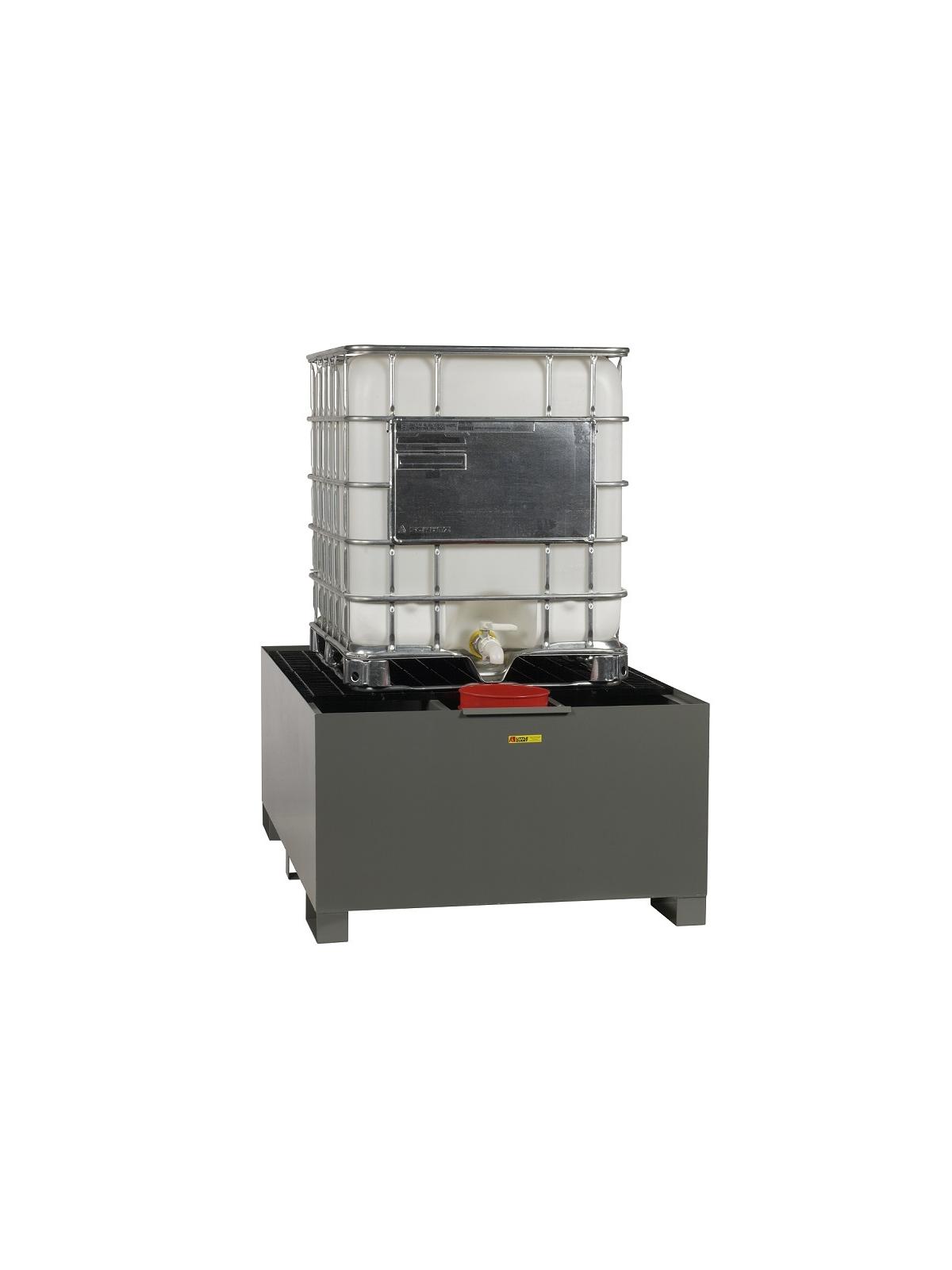 Heavy gauge steel construction for durability and extended life. Steel grating deck panels are easily removed for cleaning. Includes drain plug and grounding screw. Helps you comply with EPA requirements. Single IBC Unit has a large deck surface for additional storage. Three-piece steel grating deck is 29" high. "Convertible" deck allows IBC to be positioned for dispensing within sump area. Included pail holder shelf attaches conveniently to inside or outside of sump. Double IBC Unit can store 2 IBC's side by side, and has a lower profile for easier access. Four piece removable grating deck is 23" high. Includes 2 removable pail holder shelves. FOB Shipping Point. Surcharge may apply.