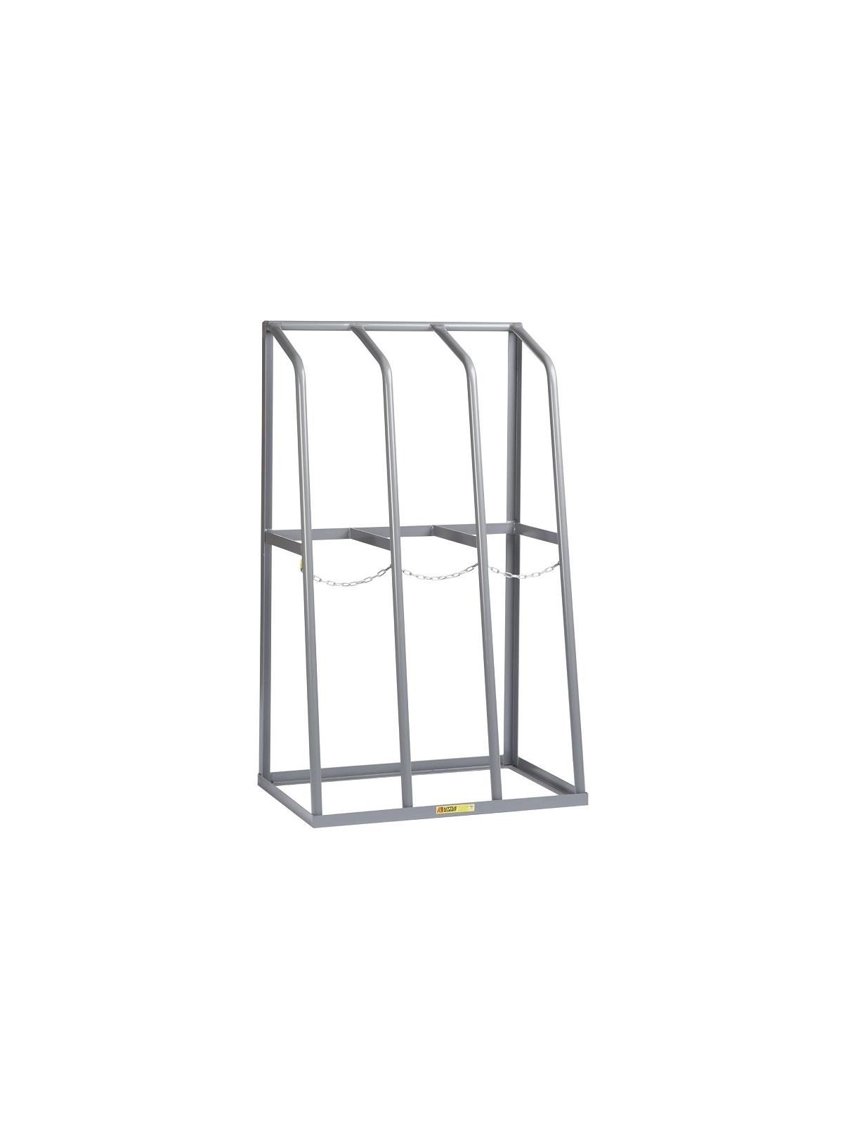 Frees up floor space by storing odd shapes and lengths vertically. Bays are 10-1/2" wide with security chain and hooks. Overall height 60". Available in 3, 4, and 5 bay versions. Base has holes for mounting to floor. FOB Shipping Point.
