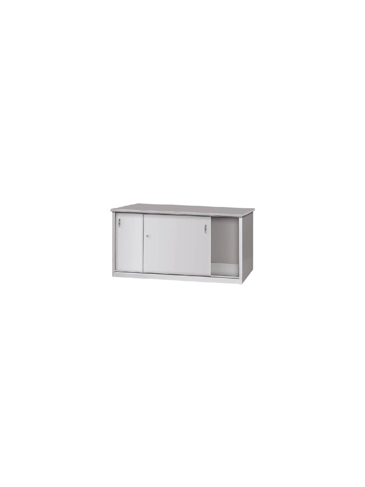 Sliding doors are factory installed and equipped with cylinder lock and 2 keys. Shelves are adjustable on 4" centers.