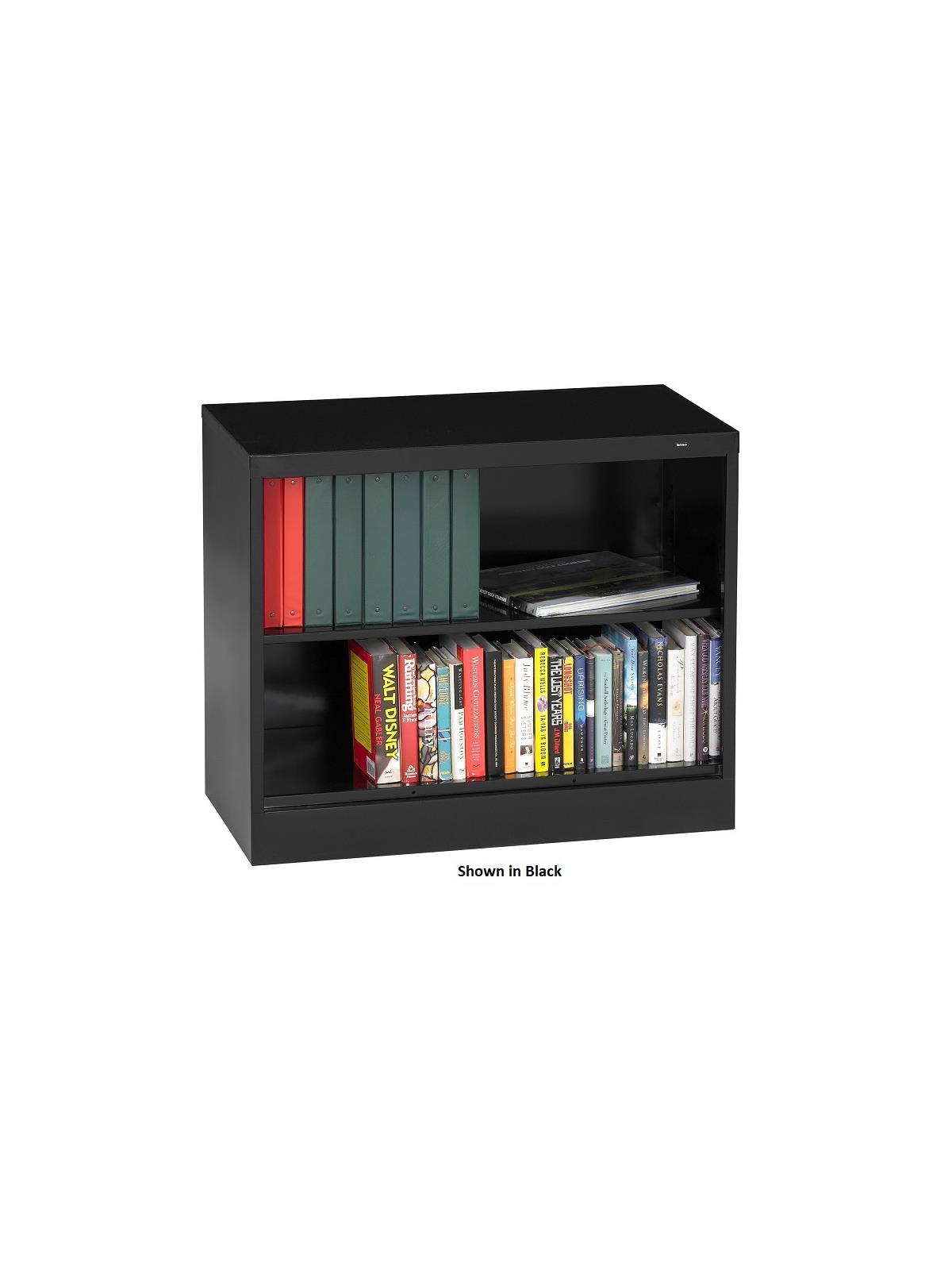 Choose the bookcase depth that best meets your needs - 13-1/2" or 18". Deeper units can also be used as a cabinet without doors to store things other than books and binders. Durable, strong units feature welded construction with clean lines so side-to-side units fit flush together. Raised base provides protection for materials on bottom shelf.