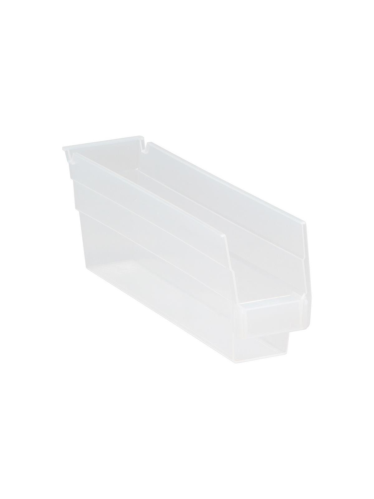 Tough, durable, high density shelf bins are the industry standard for quality. These tri-clear polypropylene bins feature a molded-in label holder, built-in rear hanglock which allows bins to tilt out for complete access when on shelving. A wide hopper front allows complete access to the contents of the bin. Edges are reinforced for added strength. They are designed for 12", 18" and 24" deep shelf units, racks or standard shelving. FOB Shipping Point.
