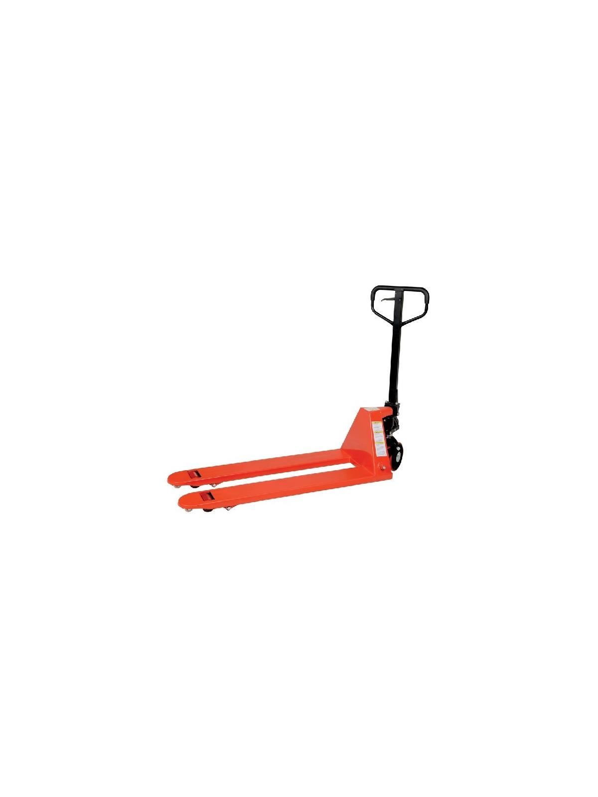 Steering wheels include precision bearing and dust covers for added life. Nose wheels are located on the front edge of each fork to assist in clean pallet entrance and exit. 2 entry wheels facilitate easy entry and 2 exit rollers make disengagement much smoother. Reinforced triple-formed forks. Internally mounted solid steel adjustable push rods. Spring loaded loop handle automatically returns to vertical position when not in use. Hydraulic pump design facilitates easy-access seal replacement. Chrome plated hydraulic pump piston for long seal life. Red baked-in powder-coated toughness. FOB Shipping Point.