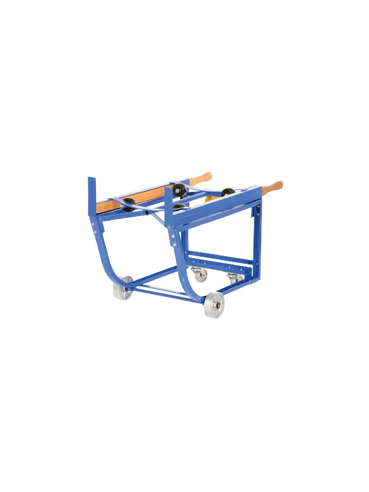 Practical design is easy to use and operate. Two retractable wooden handles are included for easy one-person operation. Steel STOPS also included for holding drum during tipping operation. Steel handle includes built-in bung nut wrenches as an extra feature. Includes 2 swivel, 2 rigid casters. Painted finish. Easy assembly. FOB Shipping Point.