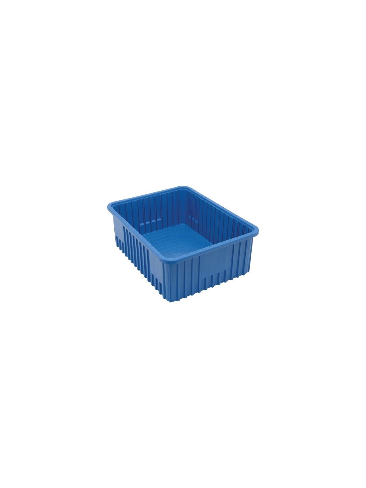 Can be used in industrial, commercial, electronic and health care industries for storage, assembly, fabrication and distribution applications. Compatible with most racks, shelving and automated, material handling equipment. Stacking rims and multi-ribbed external sides provide high impact strength. Large, smooth surface area on all four sides for content identification. Molded-in stacking ridge assures containers will stack securely with or without covers (covers sold separately). Available in Blue, Red, Gray or Clear. FOB Shipping Point.