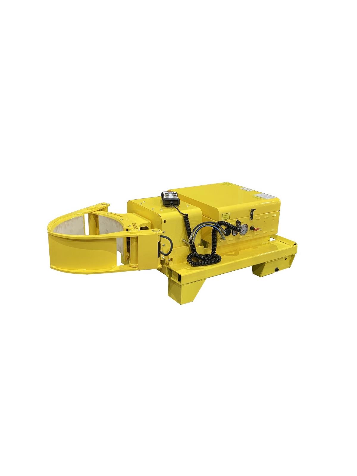 The EG2000RCR is a self-powered lift truck attachment which allows the operator to remotely manipulate drums from most lift trucks without the need for additional equipment or having to dismount the lift truck while clamping, lifting and rotating a drum. It offers the ability to clamp and rotate 18 to 28-inch diameter steel, plastic or fiber drums 360 degrees endlessly either left or right. The clamping pads are comprised of SBR rubber to provide a durable yet secure non marking surface to grip the drum. The maximum lifting capacity of the EG2000RCR is 2000 lbs., however the actual capacity and lift height may be limited by the specifications of your lift truck. The Eagle-Grip attachment includes two 12-volt AGM deep cycle batteries which are housed in a closable cabinet. The Quick-Claw option is also available, which eliminates the need for a safety chain. FOB Shipping Point.