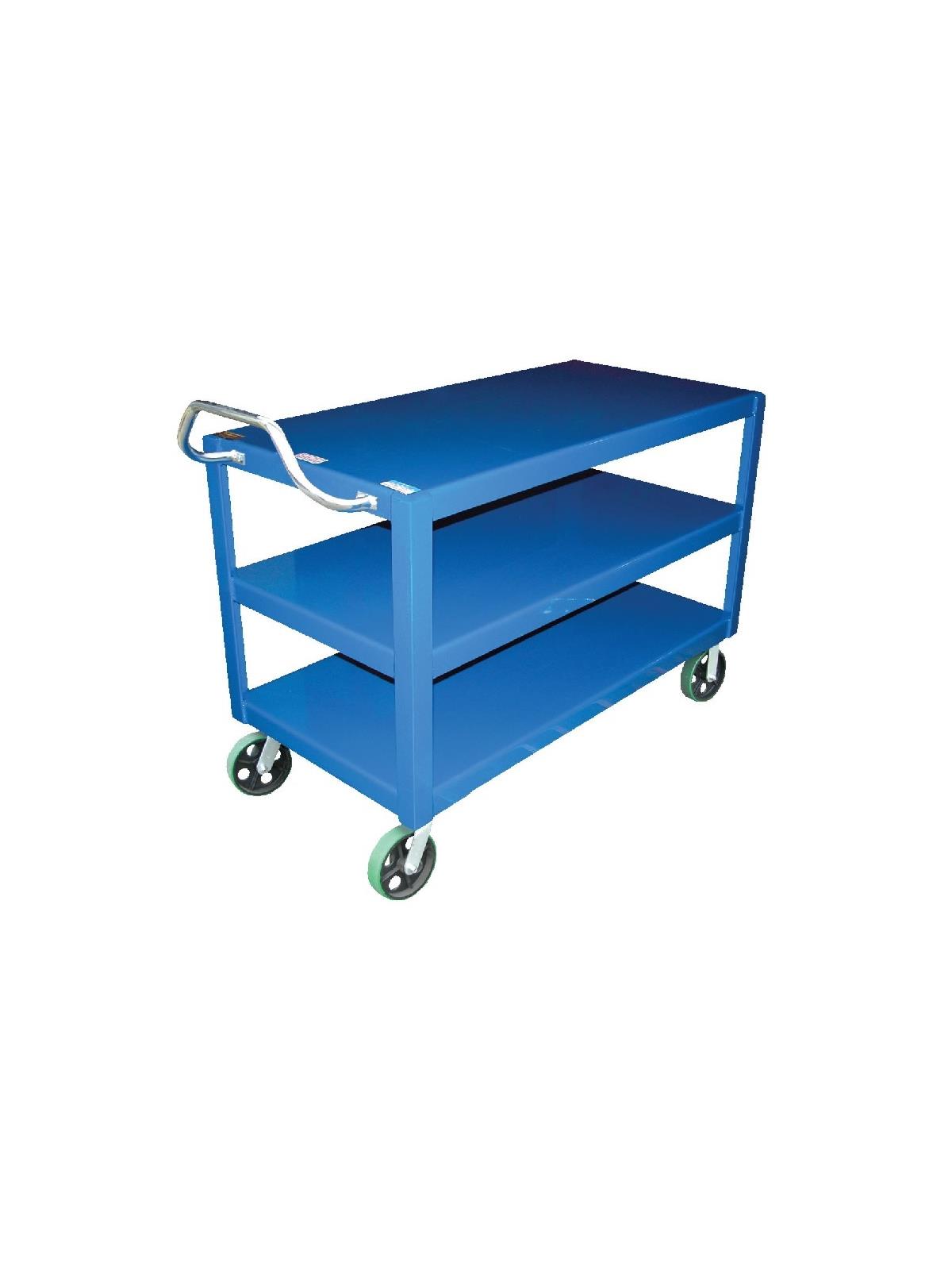 Constructed of heavy-duty steel to handle uniform loads up to 4,000 pounds. The patented ergonomic handle decreases fatigue by allowing the operator to easily maneuver the cart. Handle can be inverted for individual height comfort. Rolls on 8" x 2" casters, two (2) rigid and two (2) swivel with roller bearings. Many caster styles to choose from. Additional sizes available. FOB Shipping Point. Due to tariffs and market conditions, pricing subject to change.