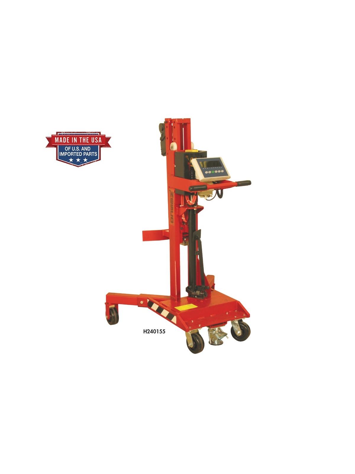 The ergonomic solution for lifting, transporting and placing drums on spill pallets. No need for the operator to touch the drum to raise, transport and lower. Features 1100 lb. capacity hydraulic jack for easy lifting of steel, poly, and fiber drums -- lifts 1" per stroke. Spring loaded grip holds any rimmed drum. Handles most 30, 55, and 85 gal. drums. Ergonomic design allows drums to be easily raised 20" above the floor. Swivel 5" x 2" phenolic casters for easy movement. Choose from five models - Standard, High Reach, Scale, Power Lift & Drive. FOB Shipping Point. Steel surcharges may apply.