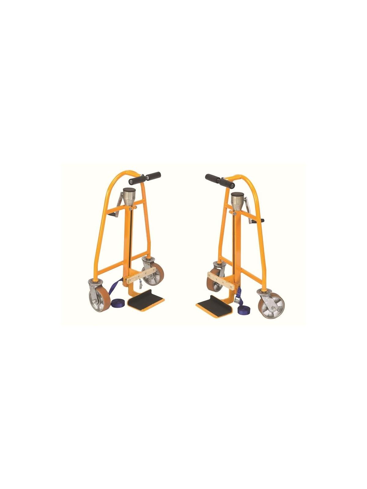 Available in manual or hydraulic models. Small footprint allows for easy storage and mobility. Included straps secure loads tightly. Sold in pairs. FOB Shipping Point.