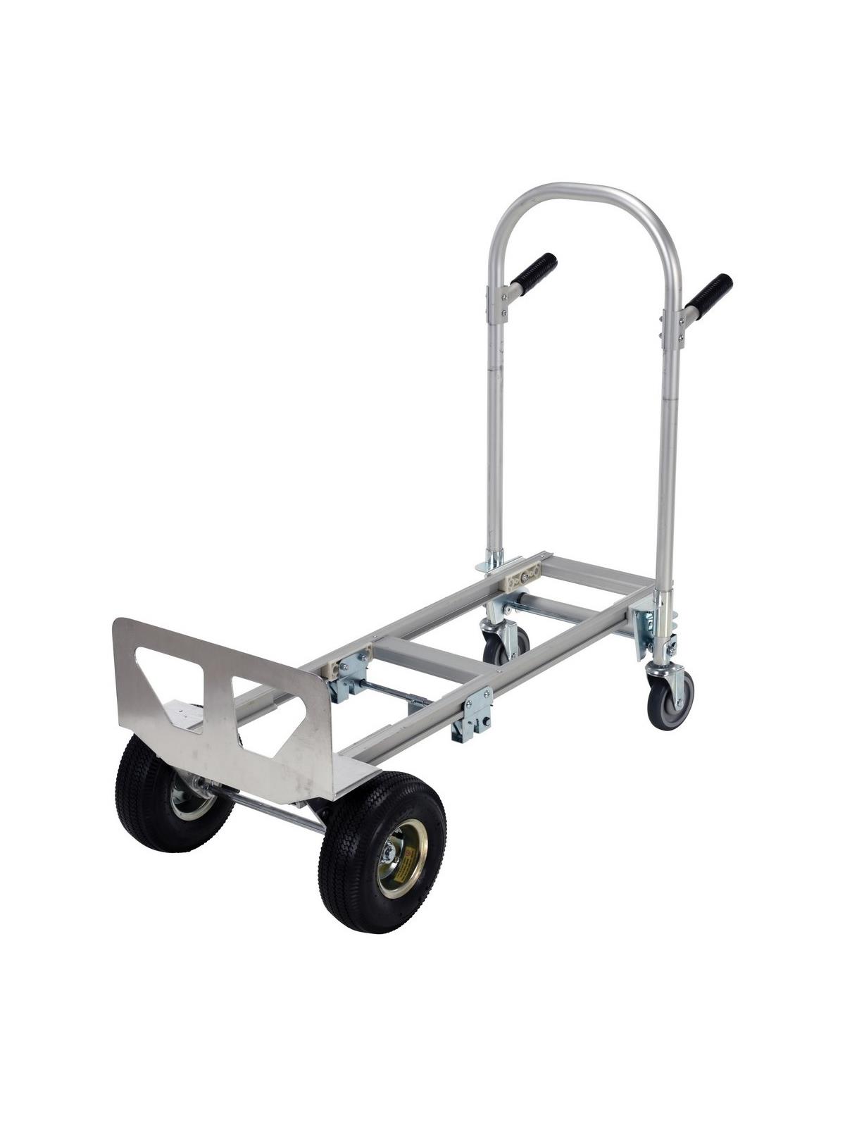 works in both the vertical and horizontal positions. Easy to convert from hand truck to platform truck.