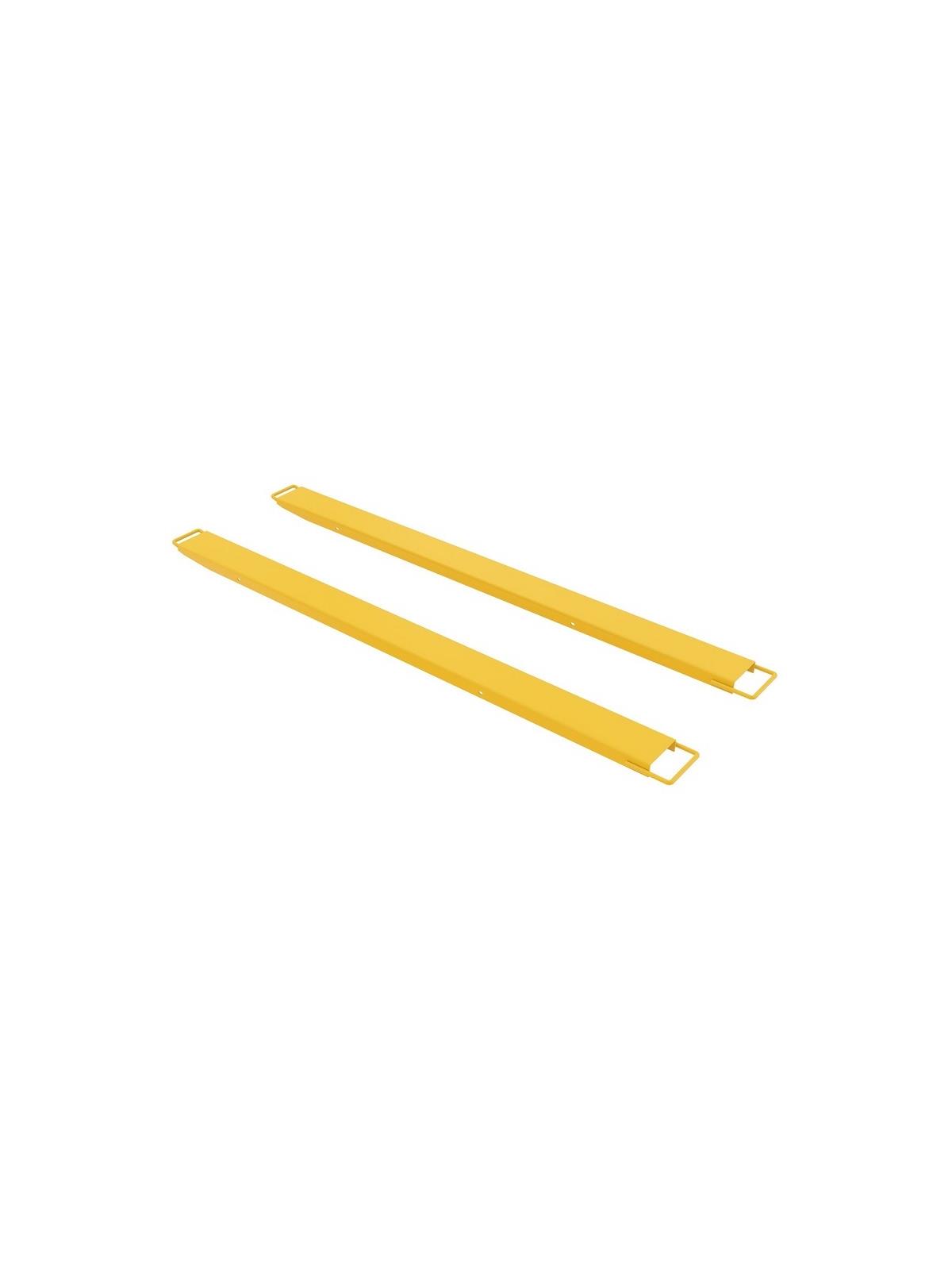 High Strength Fork Extensions are the perfect accessory for new or existing forks. The high strength material provides extra support needed to lift large heavy objects with a fork lift. A 3/16" thickness and included lifting handle for simple placement of the extension onto the lifting fork. These models are almost 40% lighter than standard fork extensions. 4,000 pound capacity is evenly distributed per pair. A powder coat finish is included to diminish scrapes and minimize abrasion during use. Baked-in powder coat finish for added toughness. FOB Shipping Point.