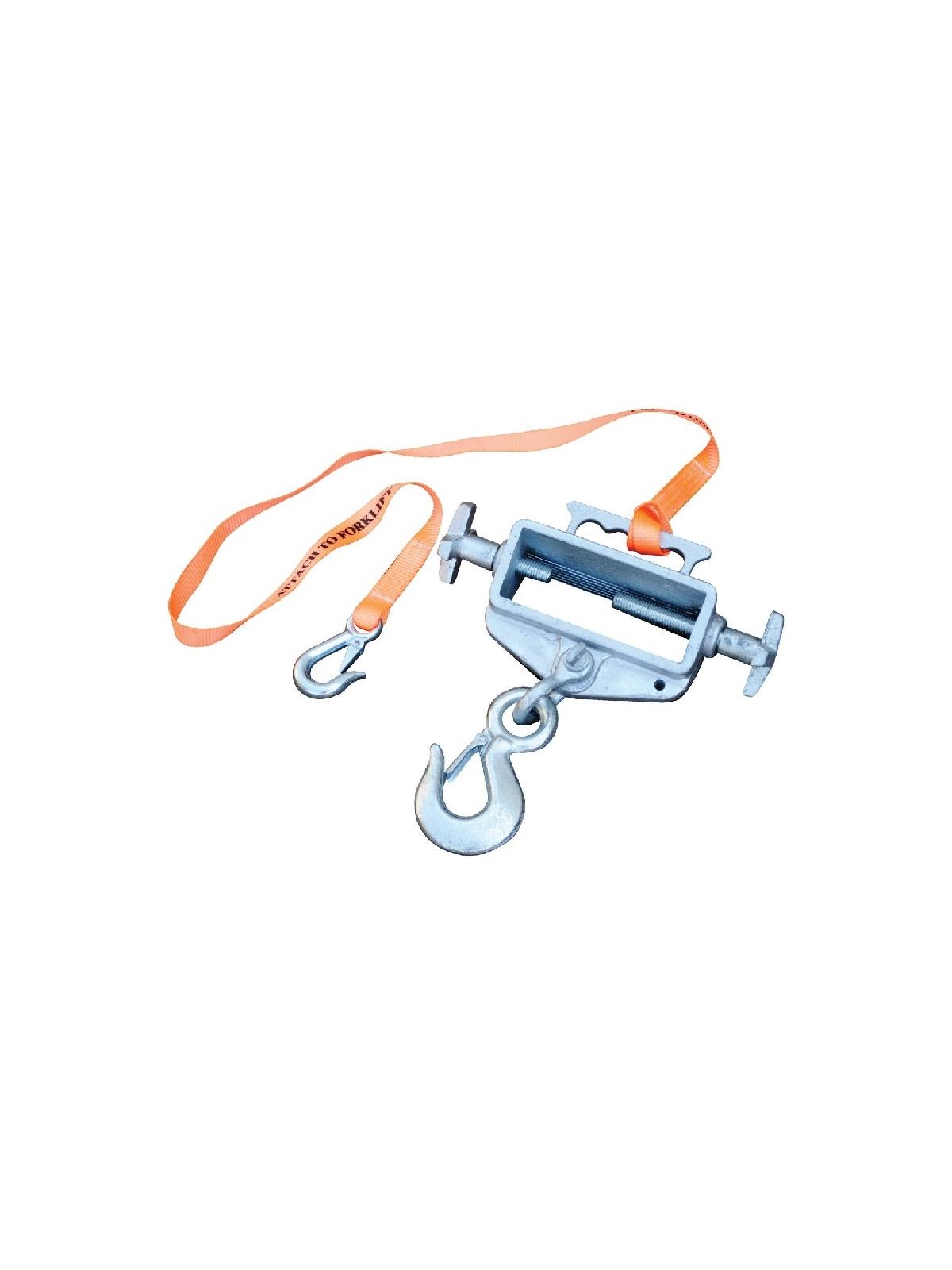 Easy to attach hoisting hook does not require special tools. Secured to the fork truck by means of a 48"L safety restraint and screw clamps. Available in single or double fork design. Both single and double attachments are zinc plated. Swivel or rigid hook with shackle included. FOB Shipping Point. Due to tariffs and market conditions, pricing subject to change.