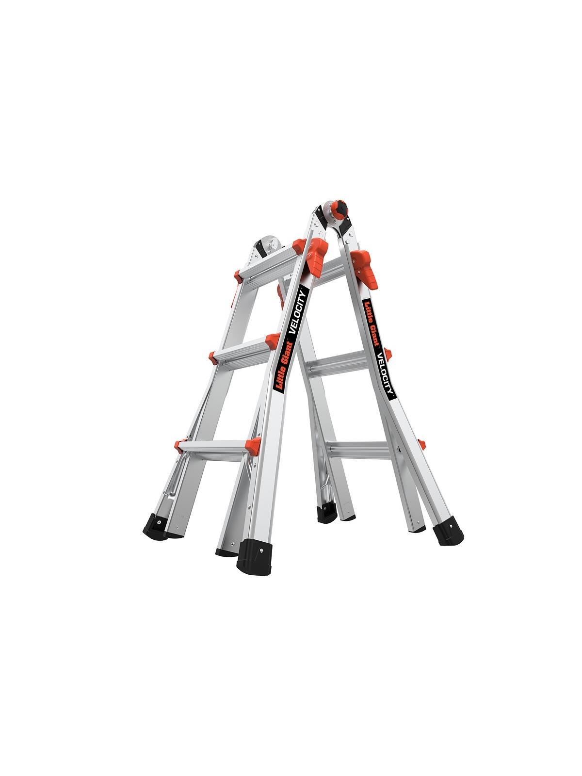 When it comes to articulating ladders, the Velocity™ by Little Giant is by far the best value for the money. Velocity™ features some of the latest patents and improvements in multi-use ladder design, Rock Lock® adjusters for fast, easy adjustment, Tip & Glide™ Wheels for easy transport (except for H15413-001), and wide rungs for improved balance, comfort and safety. Ladder works as an A-Frame, extension, staircase, 90-degree and even as trestle-and-plank scaffolding system. Use the right ladder for the right job every time and avoid 95% of all ladder related safety issues. The Velocity™ Ladder meets all OSHA & ANSI standards for the Type IA-300 lb. rating. FOB Shipping Point. Surcharges may apply.