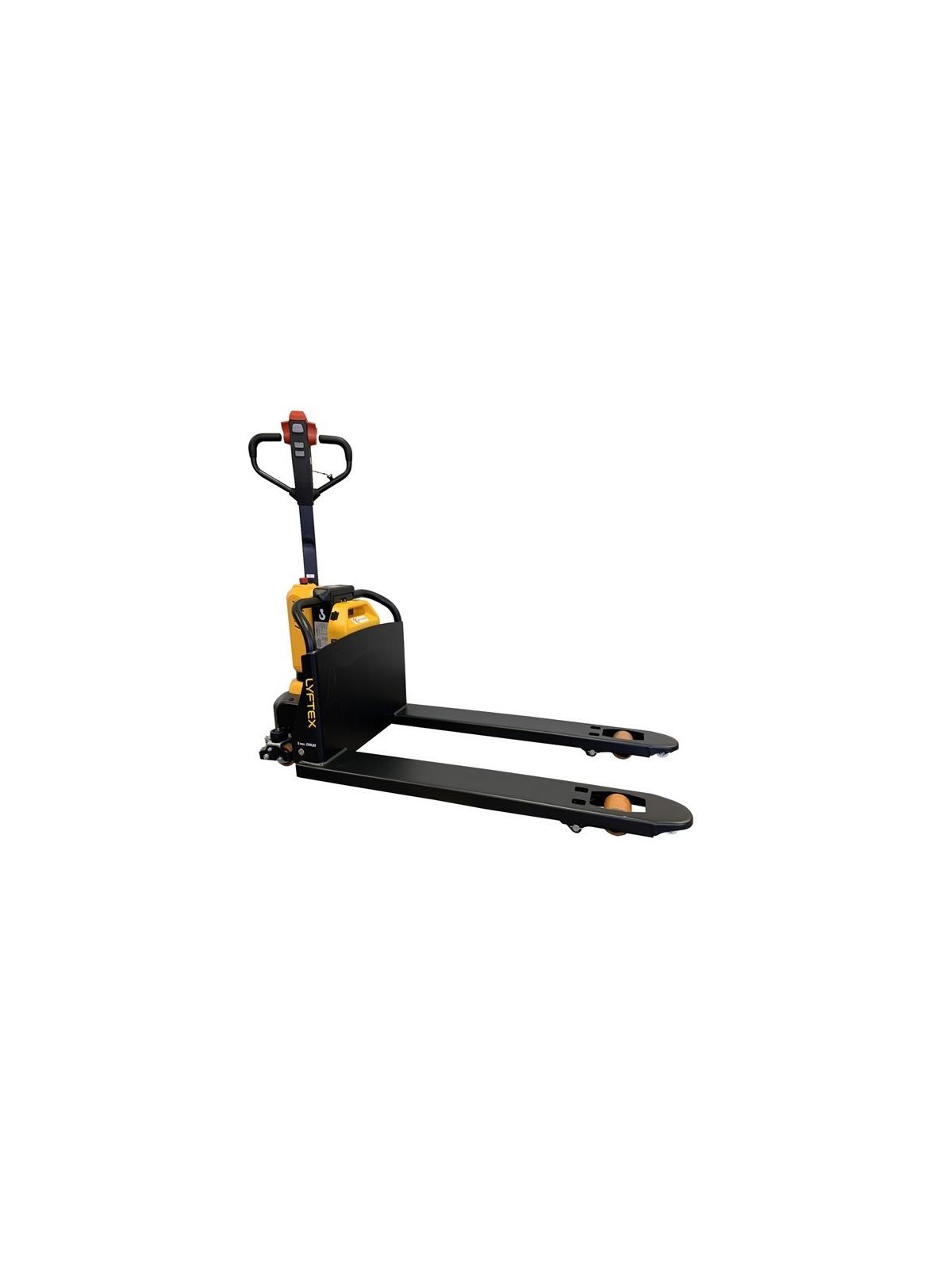 The 2500 Capacity HLXE25E Electric Pallet Jack from LYFTEX features a full electric-powered drive and lift capability of carrying and lifting loads of up to 2,500 lbs. The unit includes a heavy duty 24V/15Ah Lithium-Ion battery with fast charging ability which provide you with more than enough power to continuously work for 4.5 hrs and a maximum charge time of only 2.5 hours. Opportunity charge is also applicable. The battery pack is easily replaceable allowing you to continuously use the unit while charging a spare battery. This Fully-Electric Pallet Truck comes standard with a smart and ergonomic tiller which contains all the essential functions to finish any task at hand. Controls are conveniently located and easily accessible. The Pallet Jack has a compact and sturdy skeleton design made out of superior grade steel ensuring toughness, strength and durability. It has excellent gradeability performance and robustness ensuring a long life span despite constant rough usage. It is available in two different fork sizes measuring either in 21” or 27” wide and 45” long which is perfect for carrying US type pallets and skids. It is equipped with non-marking polyurethane steering and load wheels which offer plenty of maneuverability and stability making it perfect for material handling done indoors or outdoors.