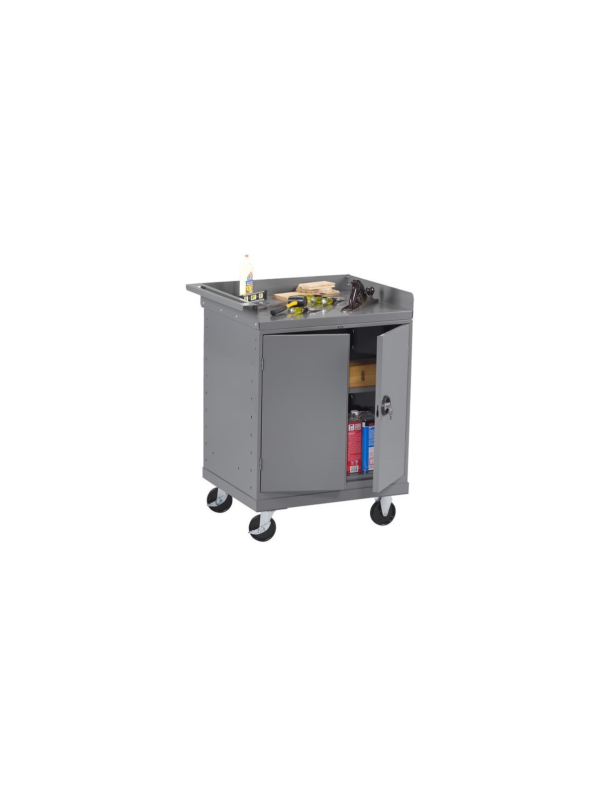 Designed to easily move heavy parts and tools to your worksite. Mobile Workbenches feature all-welded construction from heavy gauge steel. Side and Back Rail add 3" to overall workbench height. Medium Gray in color. FOB Shipping Point.