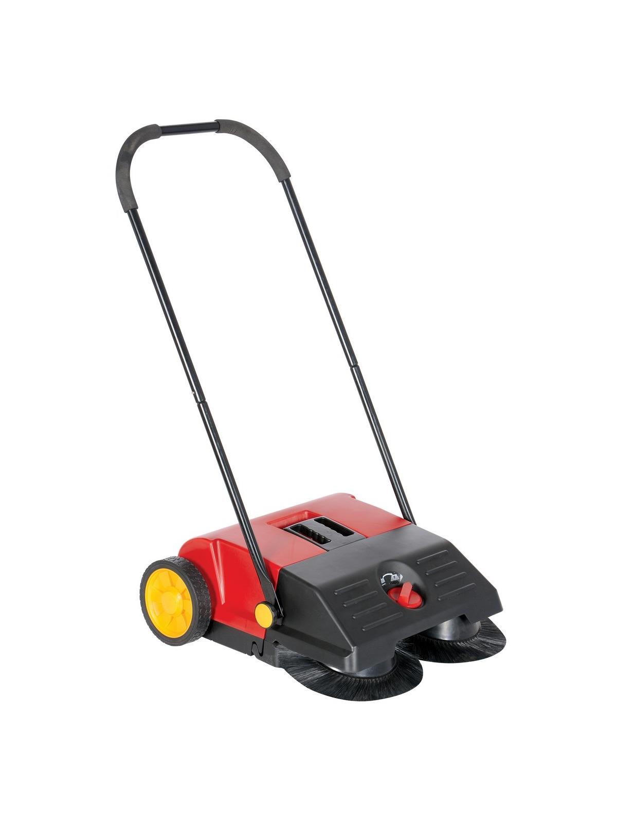 Use these sweepers anywhere, indoors or out, on concrete, asphalt, tile, and commercial carpets. Great for parking lots, gas stations, theaters, warehouses, schools, etc. The rotation of the wheels causes the brushes to rotate and pick up material. The side broom allows for cleaning along curbs, walls, and in corners. Contains no electric motor. FOB Shipping Point.