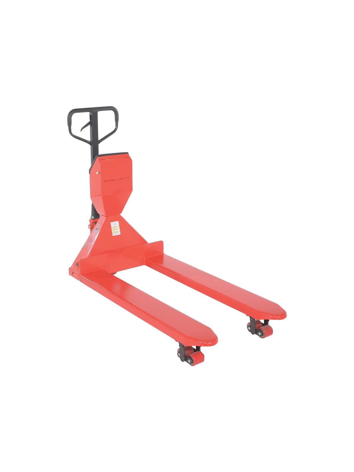User friendly and suitable for low height lifting. Built-in scale allows weighing of loads while it is being handled. Scale is selectable in a variety of increments to adjust to the size of your load. Keyboard calibration and functional setup with automatic zero capabilities. Digital filtering is used to help compensate for vibration and motion for smoothness and accuracy. Each fork is 7" in width. Scale factory calibrated for shipping destination. AC adaptor is included. FOB Shipping Point. Due to tariffs and market conditions, pricing subject to change.