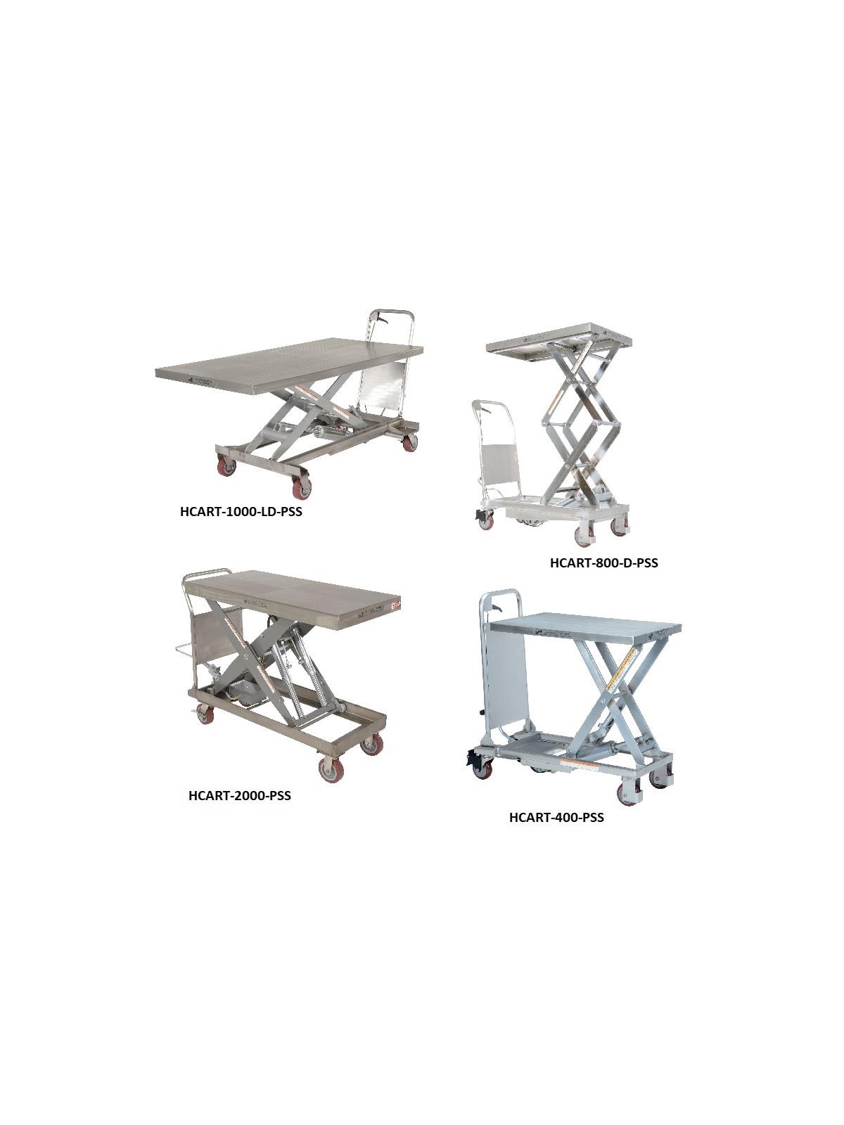 Portable work positioning lift table is constructed of durable 304 grade stainless steel to lift, position and transport heavy loads in lab, food service, and healthcare applications. Durable 304 grade stainless steel platform, handle, base frame, caster rig and hardware. Foot operated hydraulic pump raises platform. To lower unit base use the hand operated release, cart rolls smoothly with poly-on-poly casters. Not suitable for wash down applications. FOB Shipping Point. Due to tariffs and market conditions, pricing subject to change.