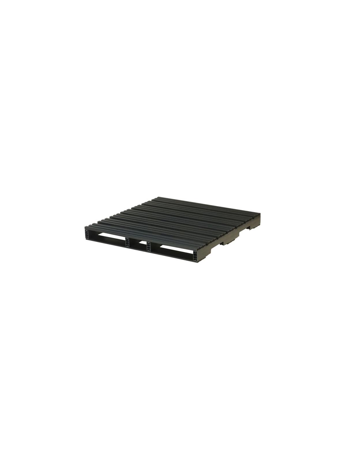Pallets are made from recycled rigid PVC and will vary in color (shades of gray to black), weight and surface consistency.