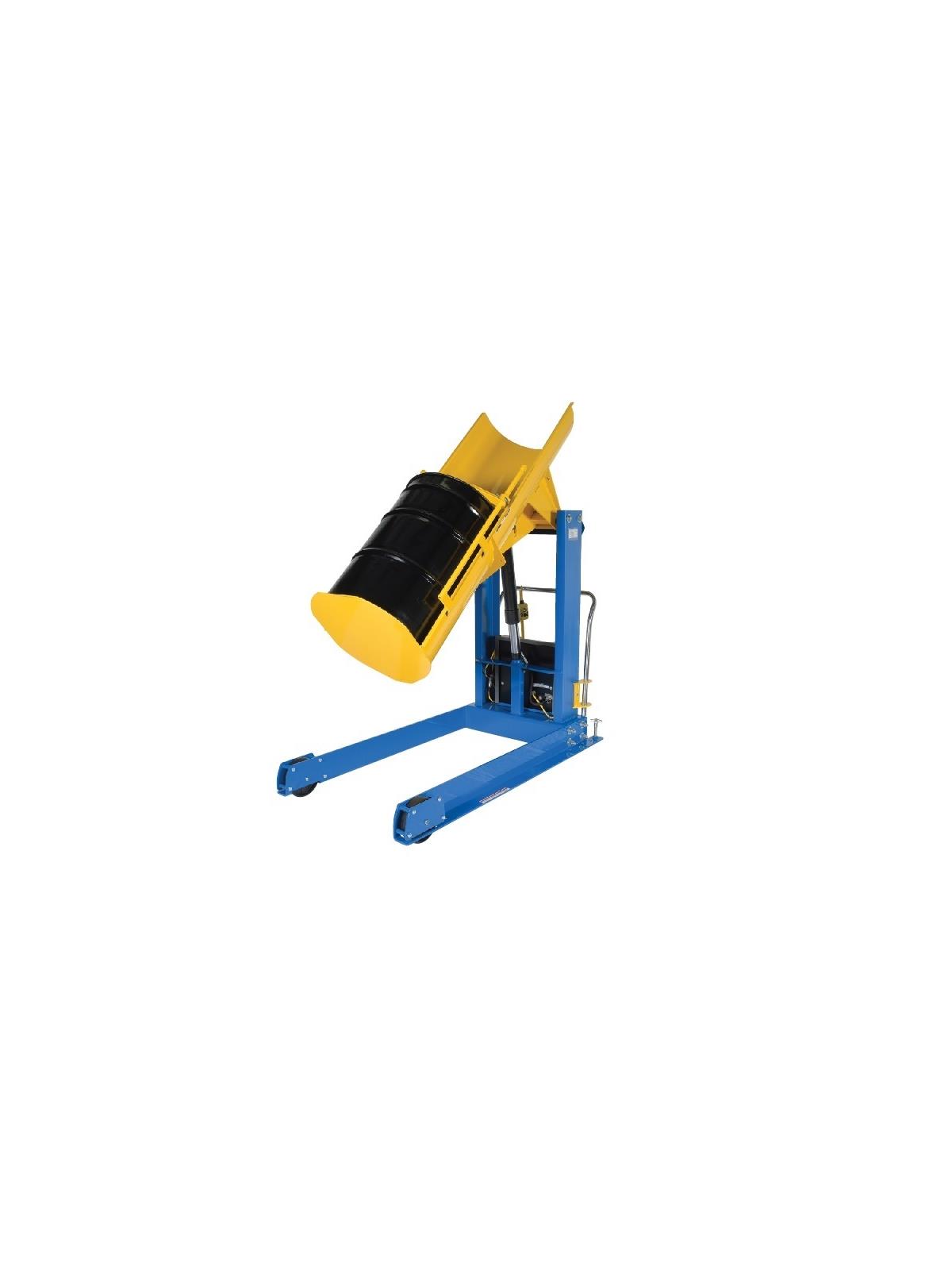Hydraulic Drum Dumpers work with 30 and 55 gallon plastic, steel, and fiber drums. The unit has a solid steel chute. Portable units have two (2) rigid and two (2) swivel casters with floor lock screws. All steel construction. Standard features include: 56" frame, 3/4" HP motor, 115V single phase, 60hz. Upper travel limit switch, safety velocity fuse in cylinder, and vertical adjustment drum restraints are standard. Dumper is operated with a hand held control on a standard 8 ft. long coil cord. Frame, blue and chute, yellow baked-in powder-coated toughness. SSC models include a stainless steel chute and base plate. The chutes are constructed with type 304 Stainless Steel in a Mill Finish. Structure on back of chute is painted with Steel-It™ coating. Adjustable height clamps are stainless steel. Steel frame, blue baked-in powder-coated toughness. FOB Shipping Point. Due to tariffs and market conditions, pricing subject to change.