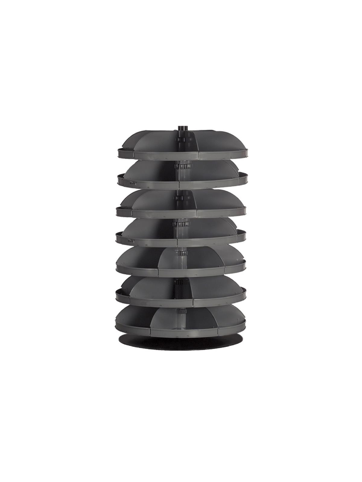 When space is at a premium, Rotabin® is the answer. Revolving shelves turn easily, independently...even when fully loaded. Made of heavy gauge steel for hard daily use. Available in Gray powder coat. FOB Shipping Point.