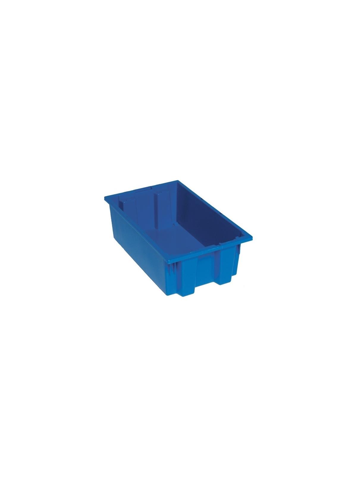 High density polypropylene, injection molded for uniform wall thickness and added strength. Lids snap tightly and securely for a safe fit. Quick 180° turn offers space-saving stacking and nesting. Stacks 6 high. Fits 48" x 40" pallets (6 SNT190, 4 SNT230 per level). Usable in temperatures from -10° to 250°F. Available in Gray, Blue, Red or Clear. Optional clear, see-thru Stack and Nest Label Holder (HSNH010) and optional Dolly (HDLY-3018) available. FOB Shipping Point.