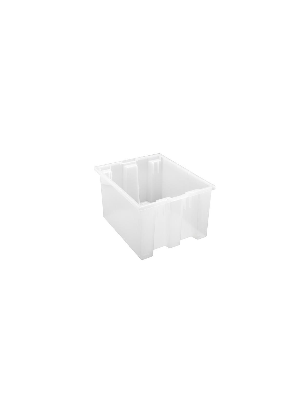High density polypropylene, injection molded for uniform wall thickness and added strength. Lids snap tightly and securely for a safe fit. Quick 180° turn offers space-saving stacking and nesting. Stacks 6 high. Fits 48" x 40" pallets (6 SNT190, 4 SNT230 per level). Usable in temperatures from -10° to 250°F. Available in Gray, Blue, Red or Clear. Optional clear, see-thru Stack and Nest Label Holder (HSNH010) and optional Dolly (HDLY-3018) available. FOB Shipping Point.