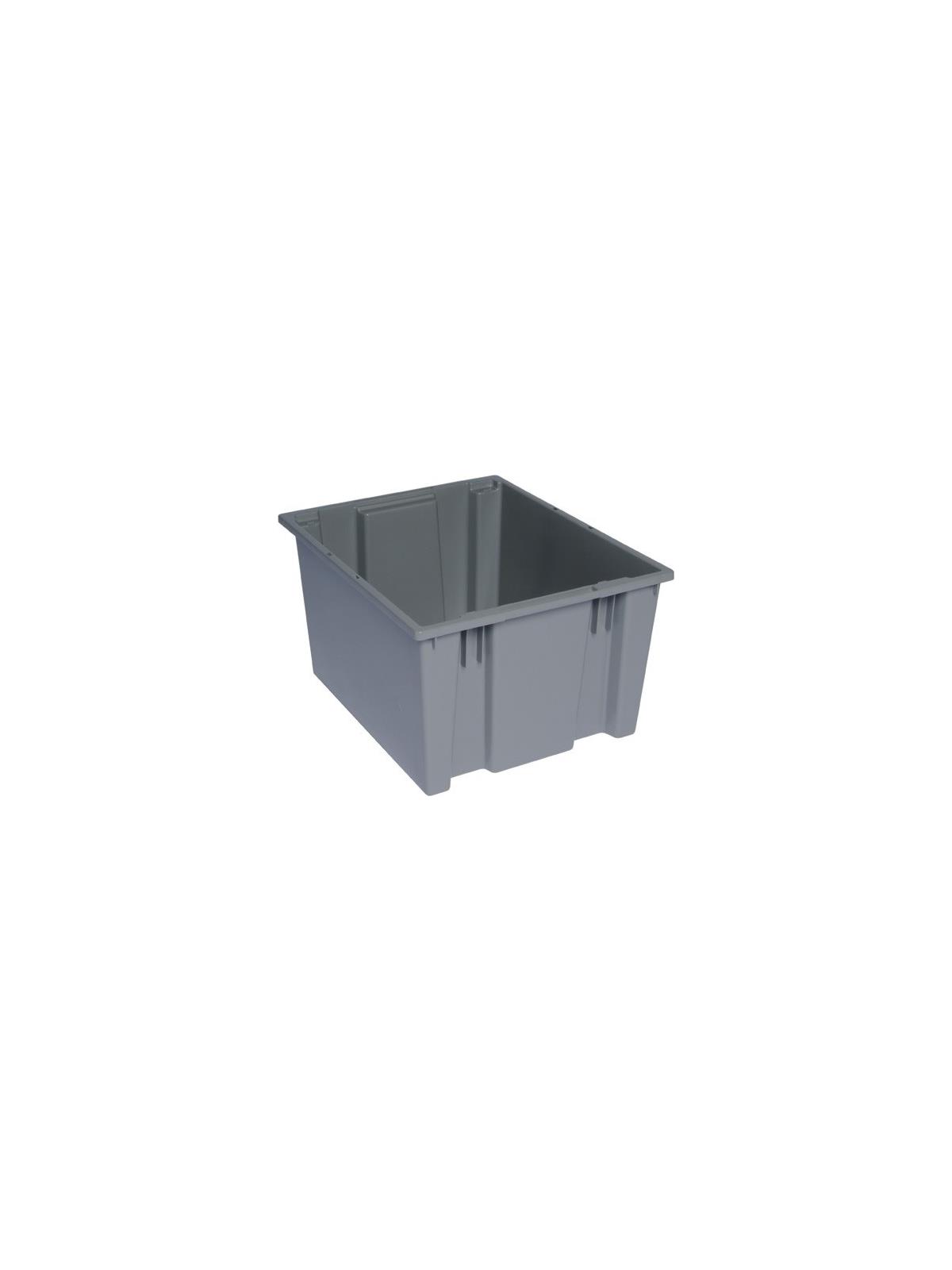 High density polypropylene, injection molded for uniform wall thickness and added strength. Lids snap tightly and securely for a safe fit. Quick 180° turn offers space-saving stacking and nesting. Stacks 6 high. Fits 48" x 40" pallets (6 SNT190, 4 SNT230 per level). Usable in temperatures from -10° to 250°F. Available in Gray, Blue, Red or Clear. Optional clear, see-thru Stack and Nest Label Holder (HSNH010) and optional Dolly (HDLY-3018) available. FOB Shipping Point.