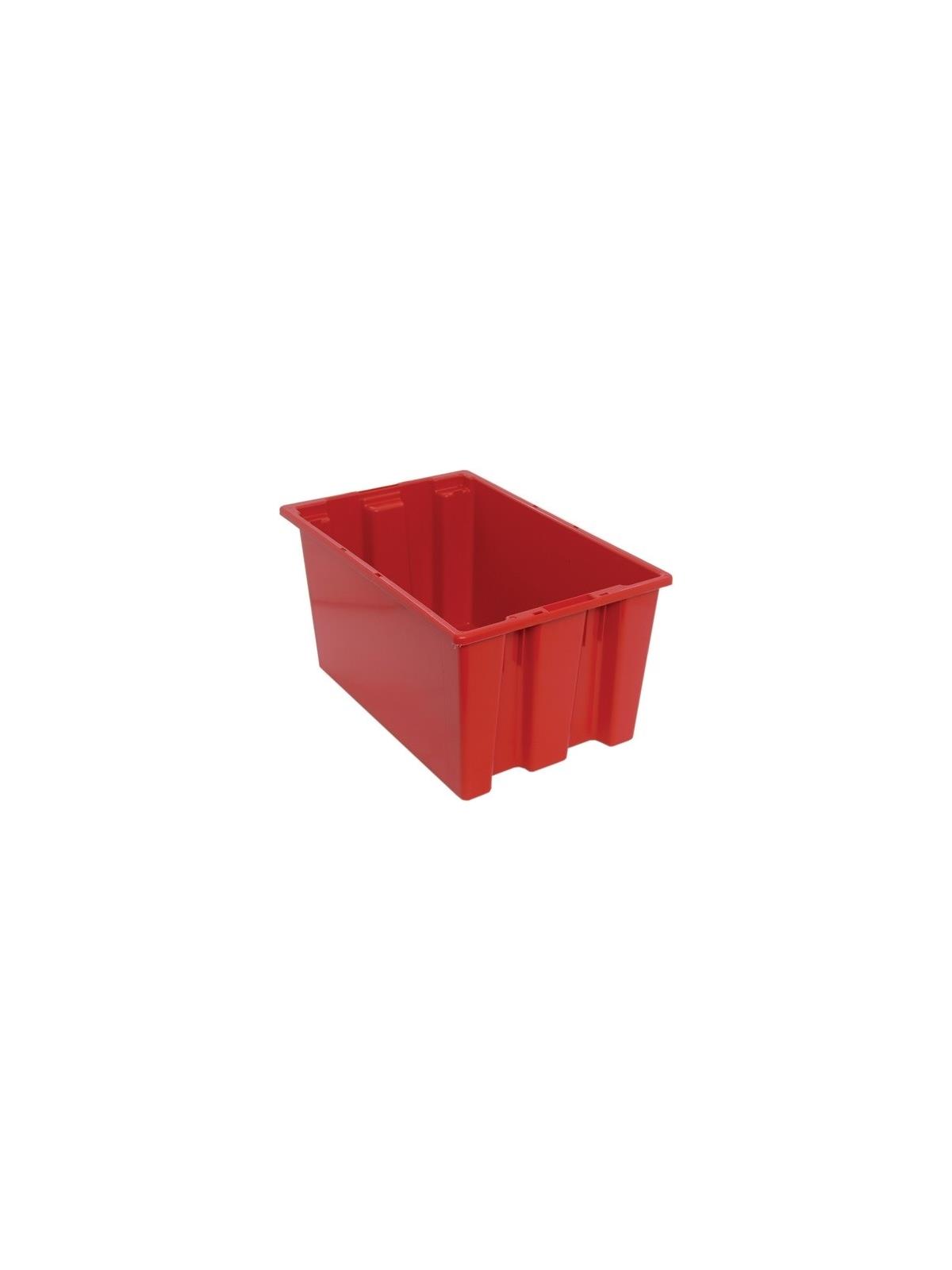 High density polypropylene, injection molded for uniform wall thickness and added strength. Lids snap tightly and securely for a safe fit. Quick 180° turn offers space-saving stacking and nesting. Stacks 6 high. Fits 48" x 40" pallets (6 SNT190, 4 SNT230 per level). Usable in temperatures from -10° to 250°F. Available in Gray, Blue, Red or Clear. Optional clear, see-thru Stack and Nest Label Holder (HSNH010) and optional Dolly (HDLY-3018) available. FOB Shipping Point.