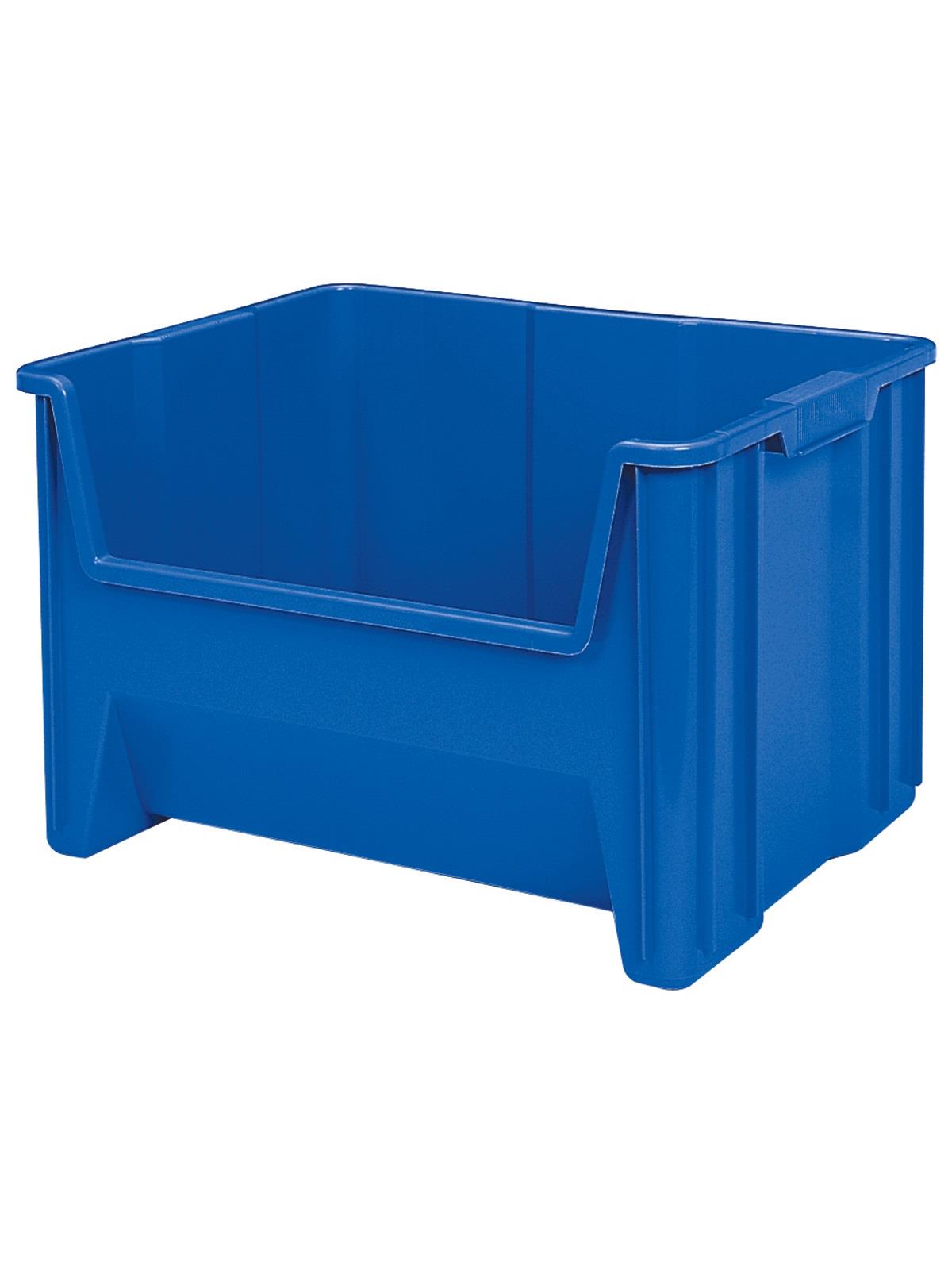 Built tough for 75 lb. load capacity. Features large comfort grip handles. Large radius corners and a curved upper lip add strength. Side ribs insure stability when stacked. Wide-hopper front allows easy access. Available in Blue, Gray or Clear. H13017 also available in White. FOB Shipping Point. Stack bins together to form a storage system. See Related Items tab for Stak-N-Store Wire Systems. Surcharge may apply.