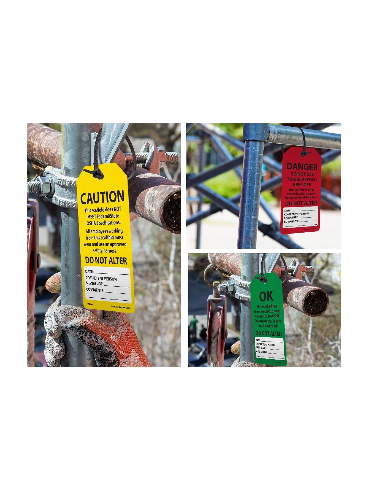 Scaffold Safety tags can be taken to the scaffolds to indicate the safety status of the unit. Tags keep workers safe by providing up to date scaffold information readily available on site.