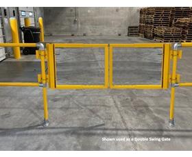 The adjustable swing gate is adjustable in 2" increments between the described smallest and largest sizes of each group option. Mounting hardware is included with each gate. The stopping position can be adjusted with the hardware included. FOB Shipping Point.